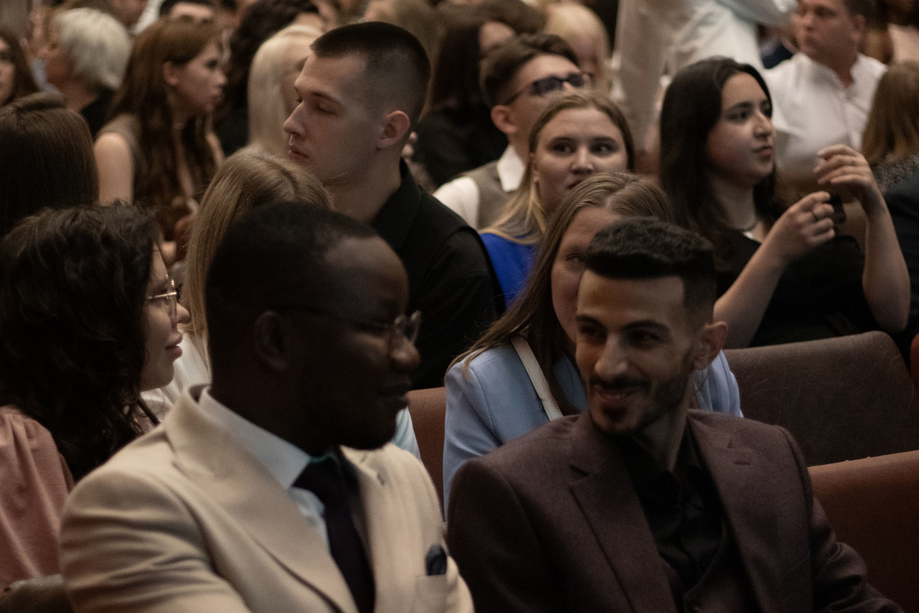 Вручение дипломов прошло в торжественной обстановке. Со сцены ребят поздравляли преподаватели, ведущие деятели академического сообщества, потенциальные будущие работодатели, а рядом были родные и друзья.