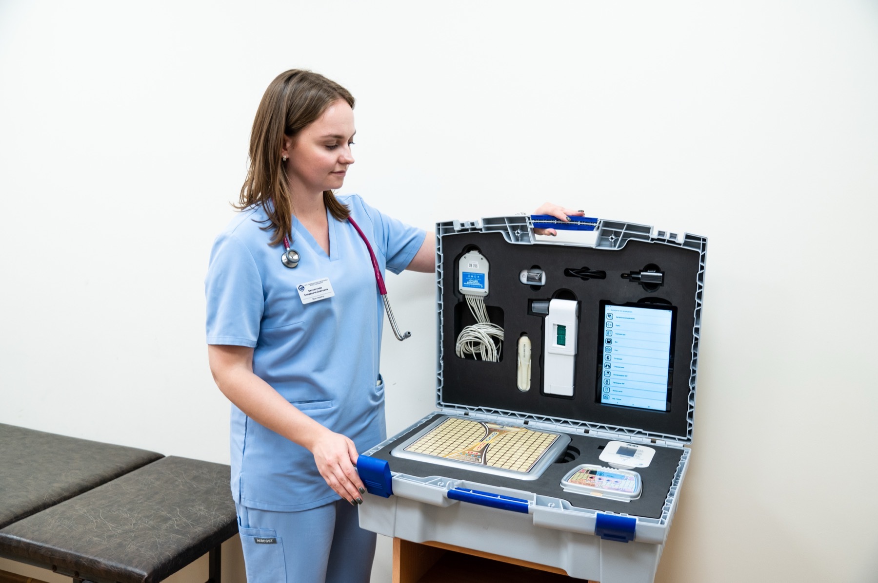 «АПАК» позволяет измерять ключевые параметры здоровья ребенка (вес, артериальное давление, жизненную емкость легких, насыщение крови кислородом). Кроме этого, комплекс позволяет проводить электрокардиографическое исследование (ЭКГ) с автоматической передачей данных через