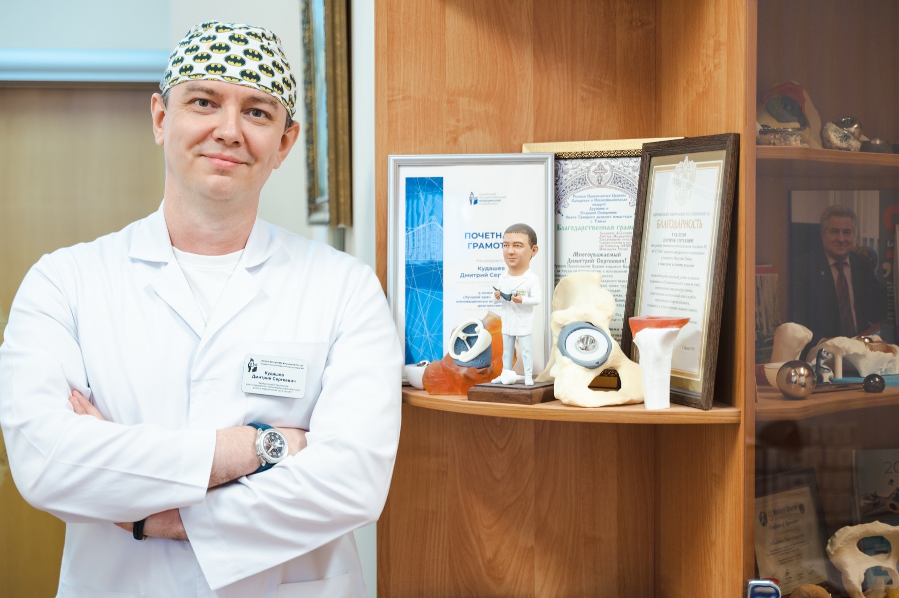 Ординатор отделения детской травматологии и ортопедии Клиник СамГМУ Арслан Мустафин только начинает свой путь в профессии, но к выбору шапочки подходит с душой. «У меня несколько шапочек с мультяшными персонажами. Когда работаешь с детьми, это просто спасение: они приходят, испытывая страх, а видя знакомого героя, переключаются, начинают улыбаться, могут, например, обсудить мультики. Контакт налаживается за секунду, — делится Арслан. — Мне кажется, для детского хирурга это вообще обязательный аксессуар. И, честно говоря, глядя на старших коллег, тоже захотелось собирать свою коллекцию. Это как маленькая позитивная традиция».